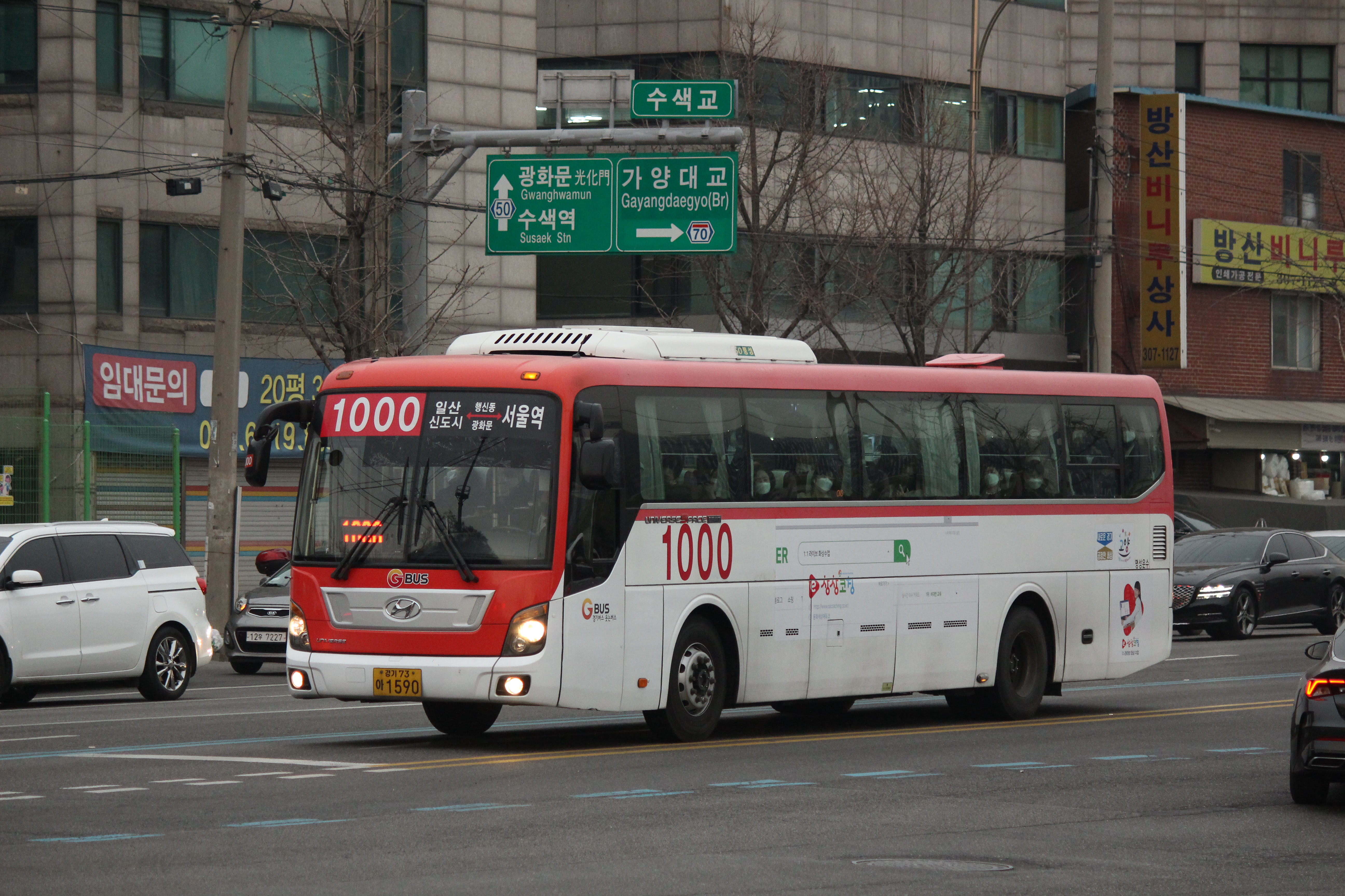 수색에 방문했을 때 기관차 기다리는 동안 잠시 찍은 1000번 버스입니다.